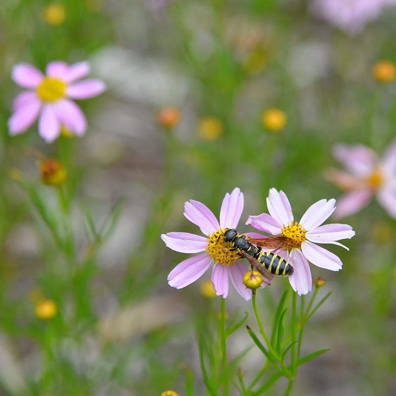 Coreopsis rosea ‘American Dream’ blooms all summer long with rosy-pink daisy-like flowers. Plant it in full sun, medium moisture, well-drained soils – this cultivar needs consistent moisture to thrive. Native to North America, it is found in moist, sandy soils in coastal plain areas from Nova Scotia to Maryland. Its mounding form spreads gently to form a groundcover and makes a beautiful complement to taller perennials. It is a nice addition to a wildscape or native plant garden as well. This deer-resistant perennial is ideal for easy gardening. Simply shear it in late summer to tidy up the plant and encourage fall blooms.